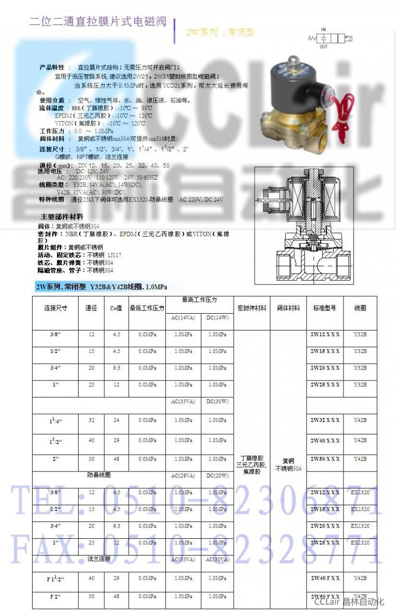 2W12,2W15,2W20,2W25,2W32, ,二位二通直拉膜片式电磁阀