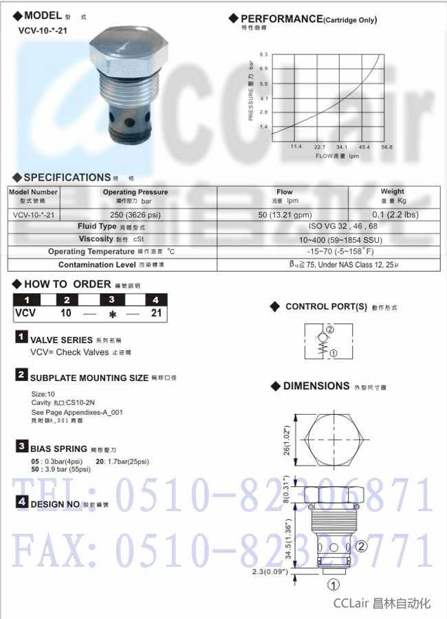 VCV-10-05-21,VCV-10-20-21,VCV-10-50-21,插入式止逆阀,