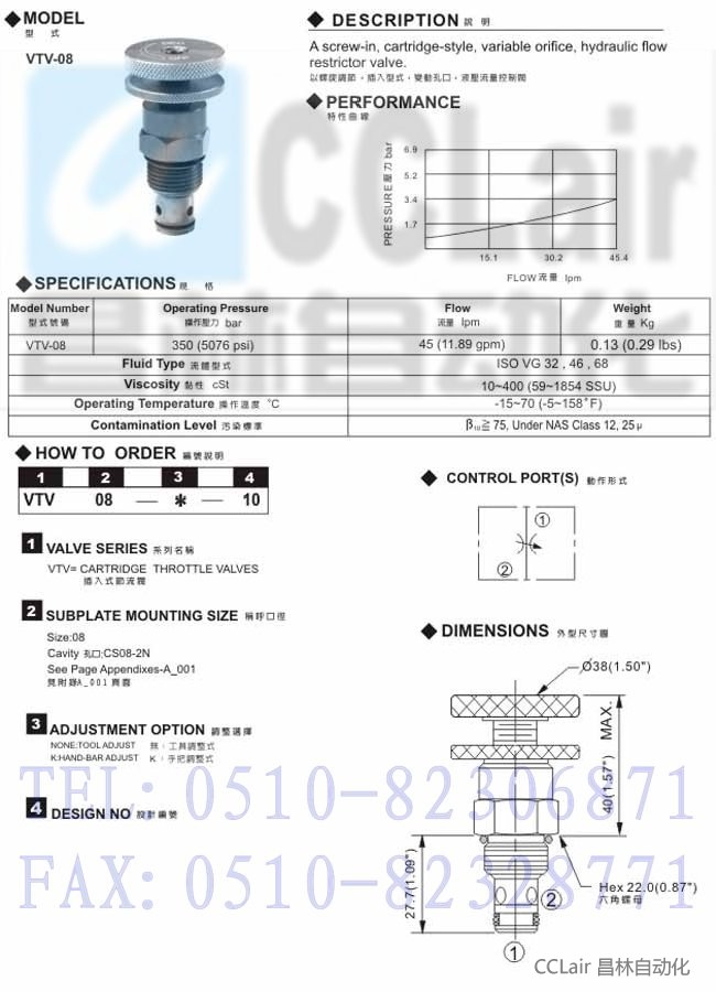 VTV-08,插入式节流阀