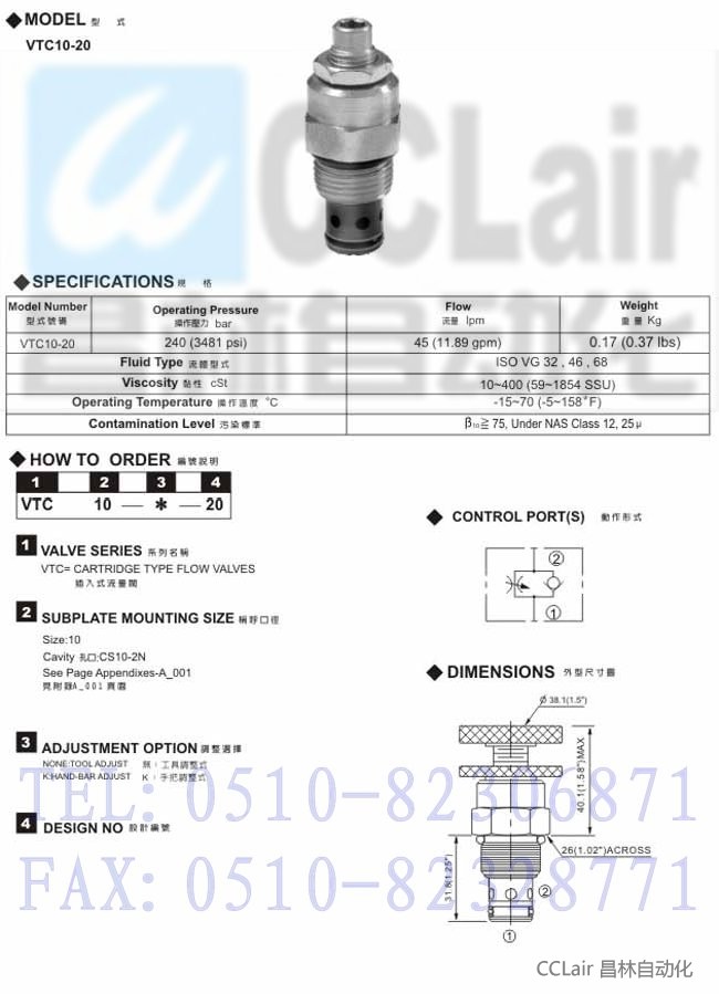 VTC-10-20,插入式流量阀,价格