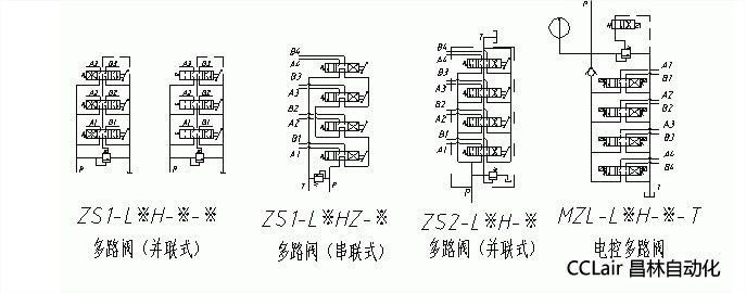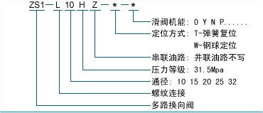 例:ZS1-L10H-4T-40,表示:4片阀都是弹簧复位和“O”型机能。