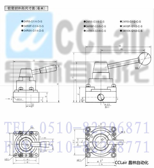 - 产品名称:34R8F-G1/4-A-S,34R8F-G3/8-A-S,34R8F-G1/2-A-S, 手动转阀